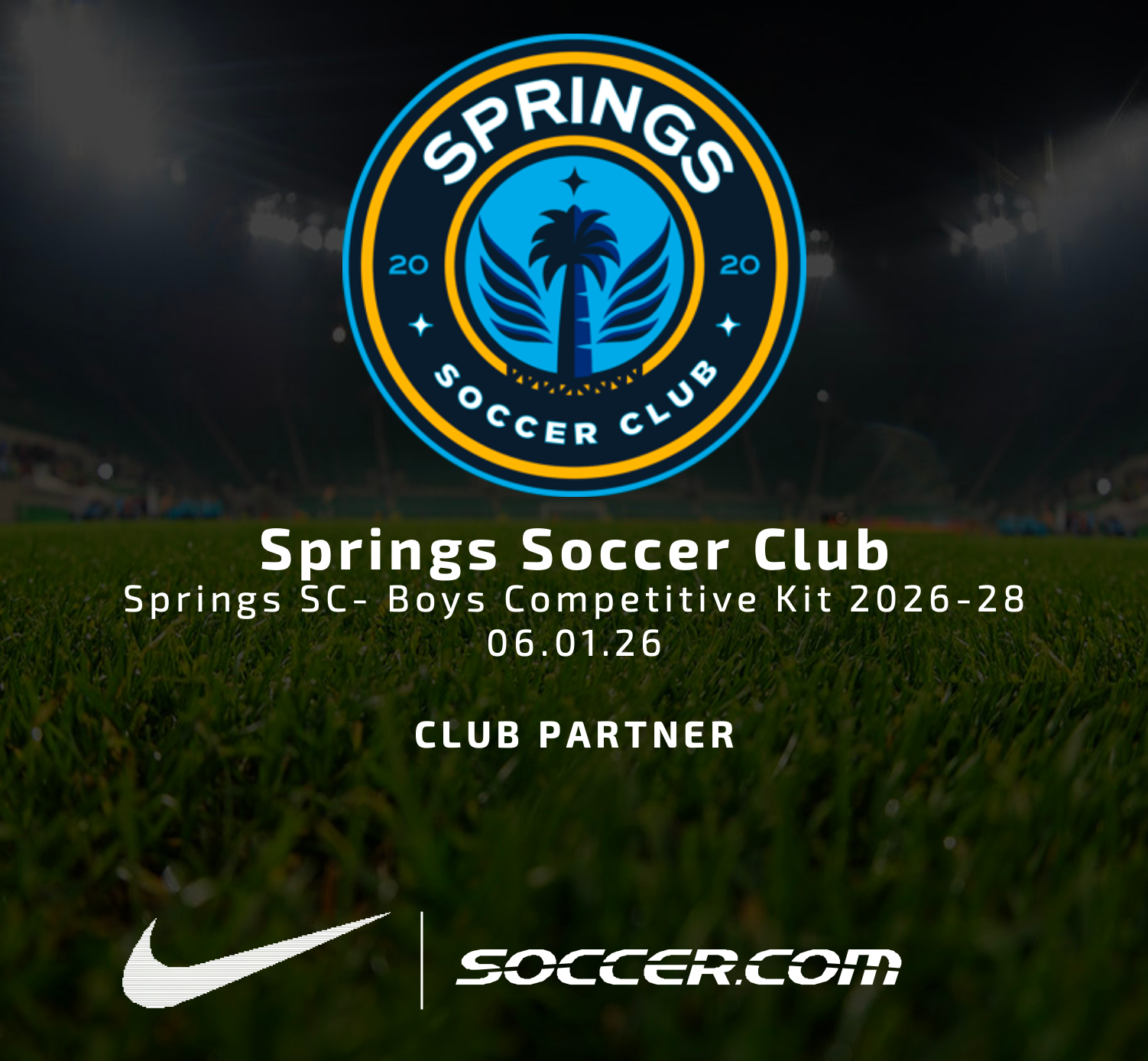 We are excited to have soccer.com as our Uniform Provider. The Springs Soccer Club Required Uniform Package will include: