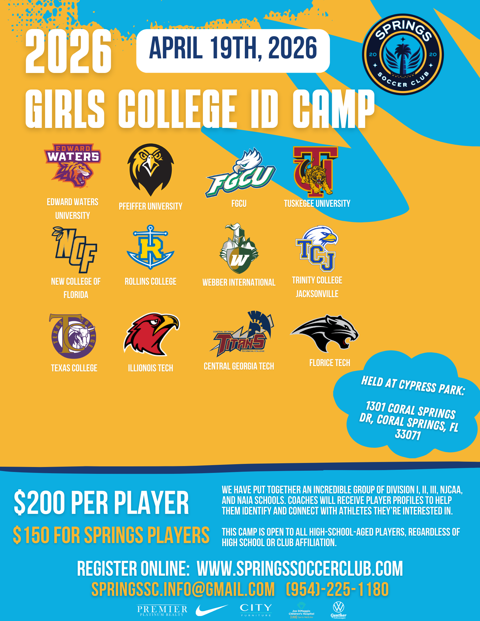 | April 19 | Girls College ID Camp |